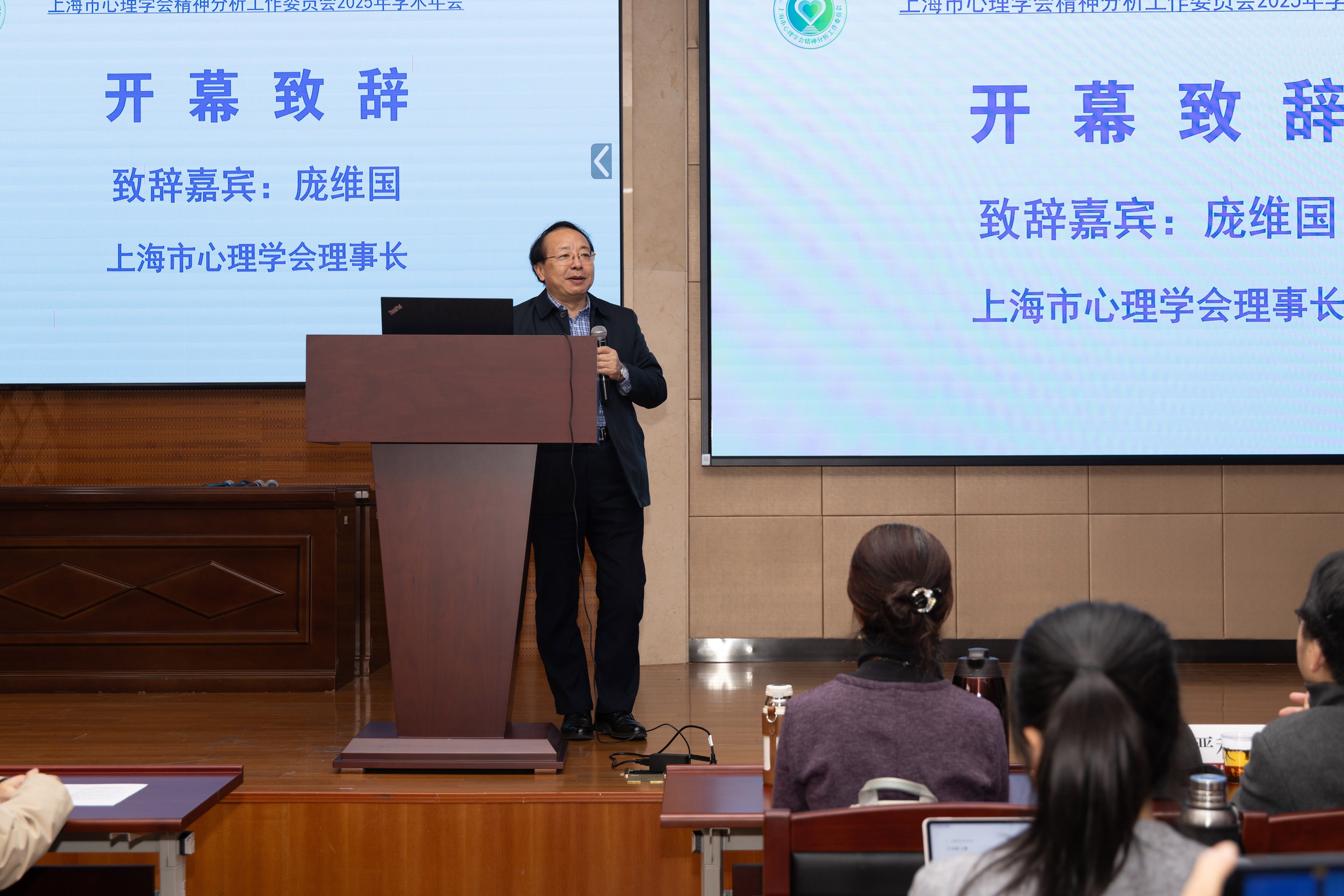 在年会开幕式中,上海市心理学会理事长庞维国为大会致辞。他对精神分析工作委员会过去一年的工作成果给予了充分的肯定。他指出委员会在推动学术交流、促进专业发展方面发挥了重要作用。同时,庞维国理事长对专委会未来的工作提出了殷切期待,希望专委会紧跟时代脉搏,继续深化理论研究,推动理论与实践的创新融合。