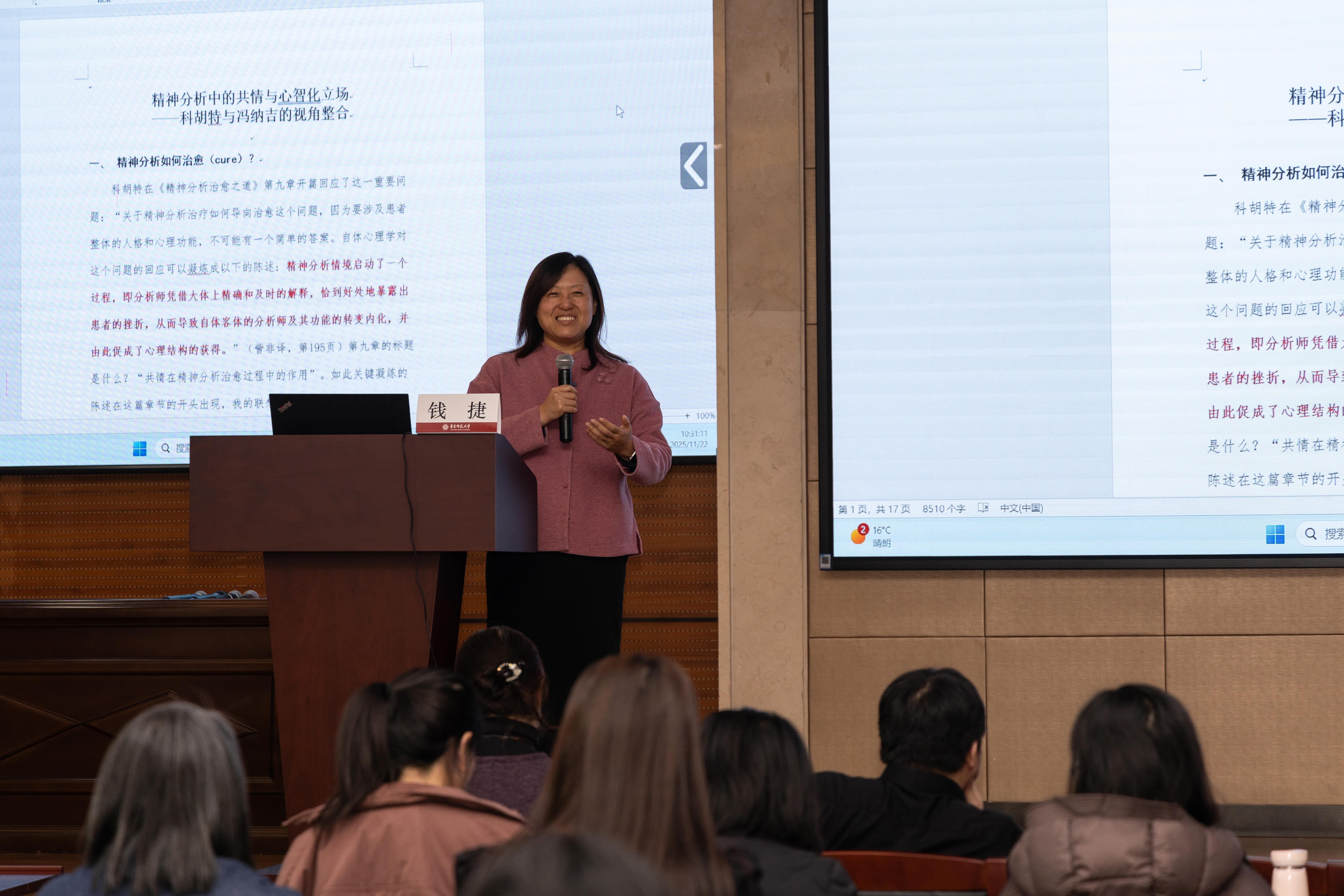 在学术报告环节中,南京中医药大学教师、临床心理学严和来博士带来了关于《拉康对弗洛伊德“移情”理论的发展》的精彩报告。严教授深入剖析了拉康如何在弗洛伊德“移情”理论基础上,进行了创造性发展,为理解“移情”理论提供了新的视角。